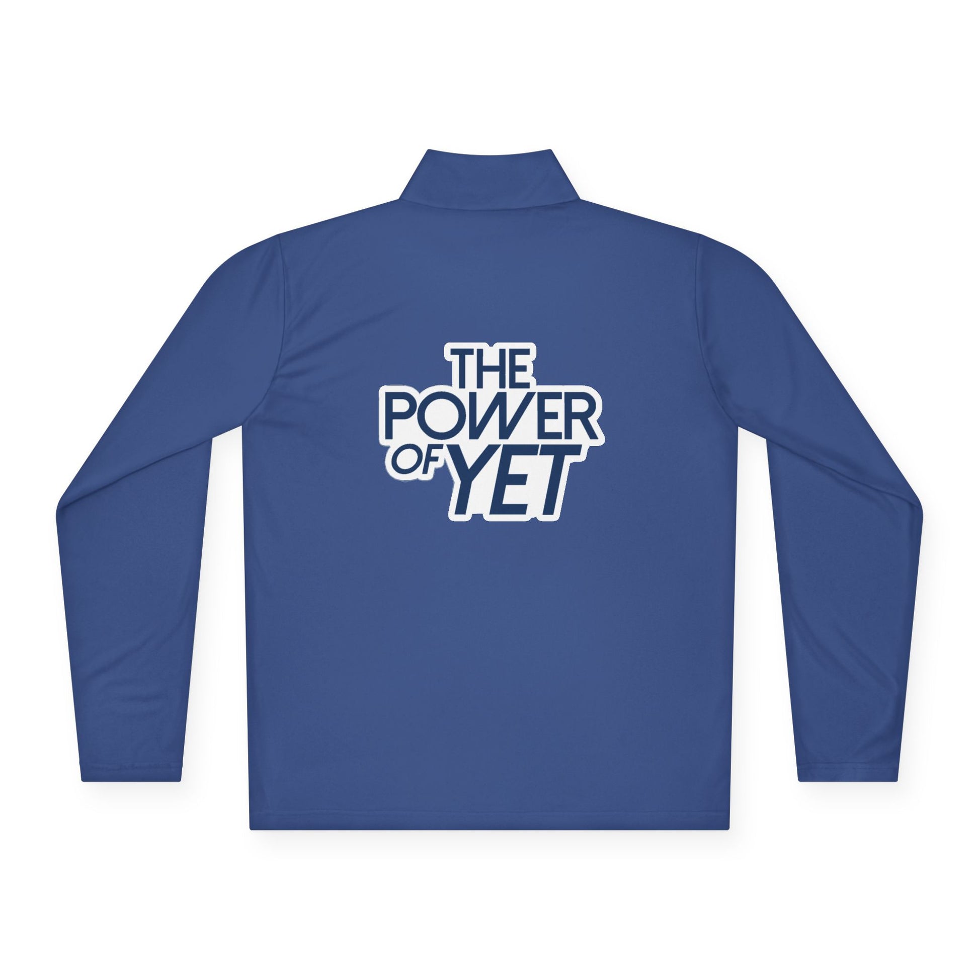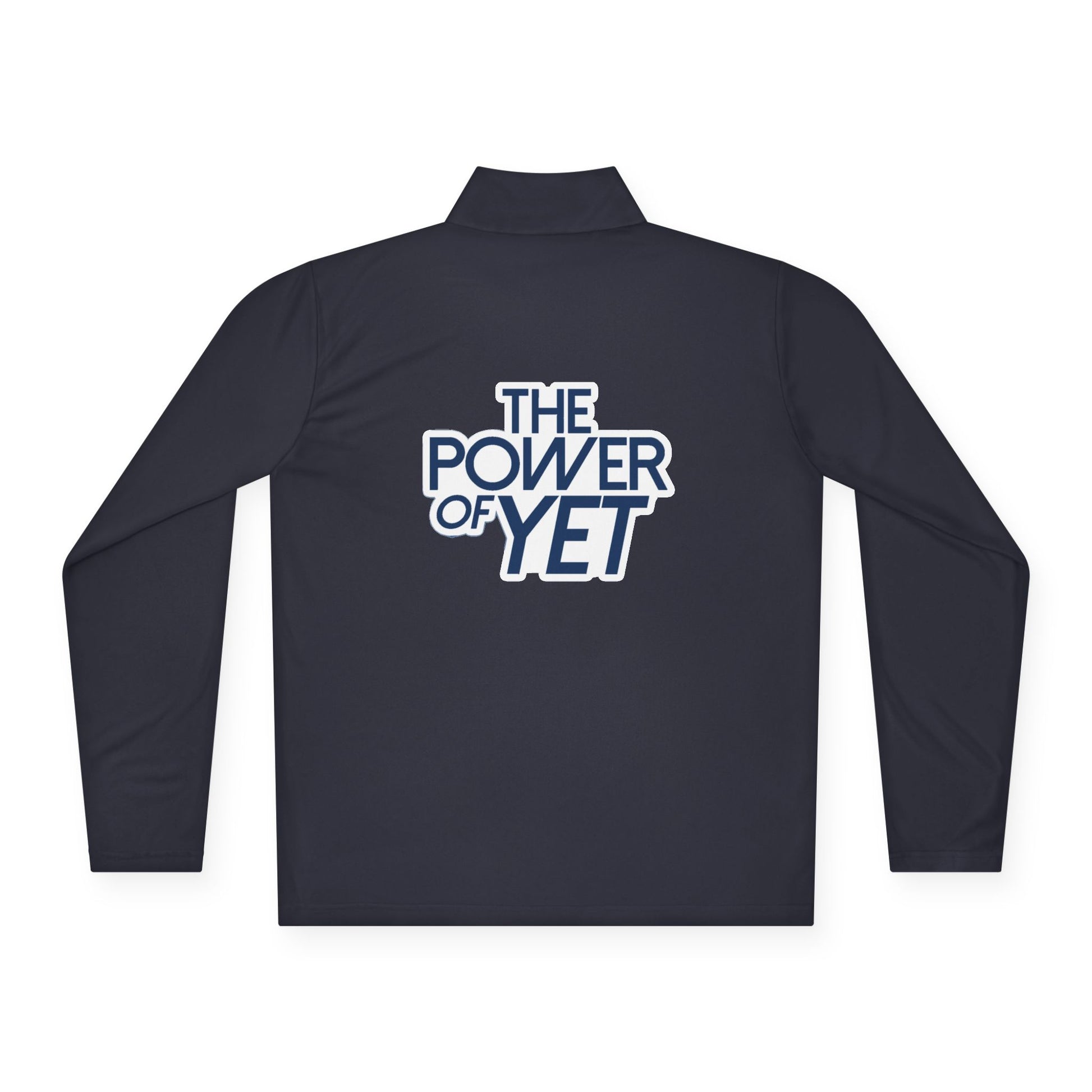Light as motivation and built for movement. This quarter-zip pullover carries a calm, confident energy—clean white fabric with a small compass-like emblem over the chest and a bold "THE POWER OF YET" statement across the back. It slides on easily for morning runs, studio warm-ups, or coaching sessions and breathes through high-output days thanks to extra-light, moisture-wicking polyester. The cadet collar and half-zip give quick coverage and airflow, while the DTF print keeps the message crisp wash after wash. Wear it when you need a steady reminder that progress is a process—quiet in front, outspoken in back.